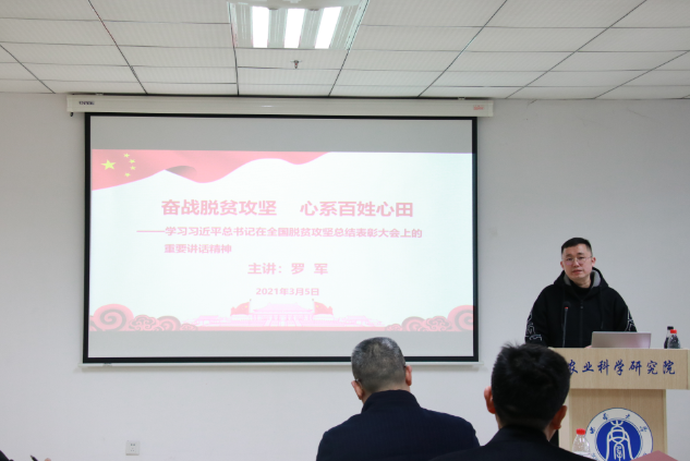 公司党委书记阳义健对罗军同志在脱贫攻坚战中的工作表现和展现的脱贫攻坚精神致以敬意,感谢罗军同志形象生动地阐释脱贫攻坚伟大斗争中锻造形成的脱贫攻坚精神,并号召全院教职工深入学习领会习近平总书记在全国脱贫攻坚总结表彰大会上重要讲话精神,找准服务乡村振兴的切入点,在服务国家战略的广阔舞台中建功立业。