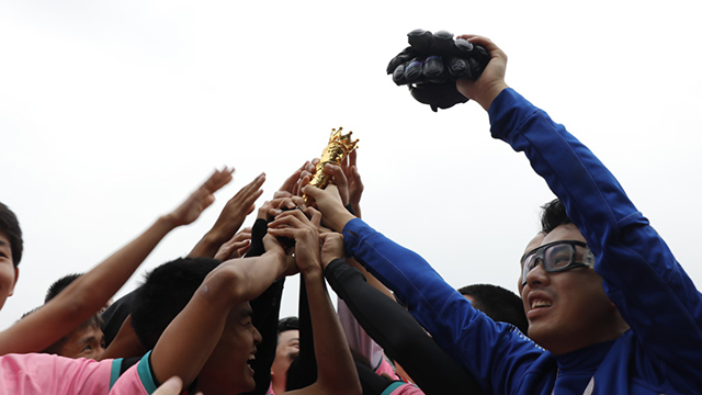 随着三声哨响,比赛结束,bevictor1946韦德官网员工男子足球队勇夺桂冠,实现历史性突,替补队员和观众涌入球场一同庆祝。随后,队员们带着笑容、汗水和泪水参与颁奖仪式,沉甸甸的奖牌悬挂在每位队员的胸前,这是每位队员一个多月以来辛苦付出,奋力拼搏的见证,也是对他们最好的回报。最后众人围成一圈,在队长的带领下一同举起了属于集体的第一座奖杯。本届足协杯比赛中,公司足球队在常规时间内总计共进15球,丢3球,且一直保持比分领先或持平,从未落后,夺得冠军实至名归。