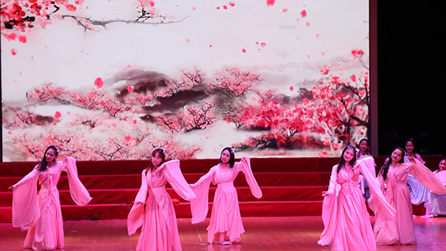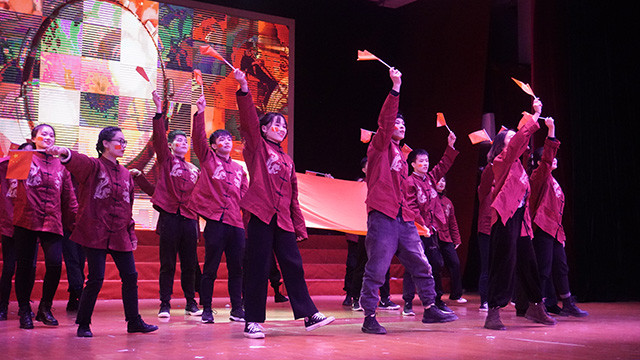 晚会第一篇章“青年梦 敢想敢拼奋进梦”的大幕由古典舞《南湘记》拉开。婀娜的身姿与一颦一笑,似柔情的碧波,激活了整个晚会。舞台剧《歌舞青春》烘托起了晚会欢腾的气氛,为晚会加上了一份青春的底色、成长的印记。园艺园林公司的同学为我们带来了一场《梦》,古声古色的场景和服装与现代潮流的穿搭相结合,让我们宛如真的置身于一场梦境中,回味无穷。接下来是由农生院带来的舞台剧《昨日青空》,洋溢着浓厚的青春气息。公司同学的表演和演唱感染了在场的每一个人,赢得现场观众的广泛称赞,大家情不自禁地跟着音乐晃动着闪烁的荧光棒,形成了一道靓丽的风景线。看似简单的歌舞类节目活跃了全场气氛,为晚会全场掀起了第一个小高潮。