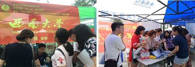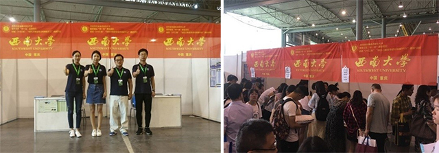 6月24日-25日,重庆市第十五届普通高校招生志愿填报咨询会在南坪国际会展中心举办,公司人才招聘处招生管理科科长朱高峰、公司外事秘书刘志斋、数学与统计公司辅导员张熠、荣昌校区动物科学公司辅导员贺玲一行4人作为公司招生代表参加咨询会。