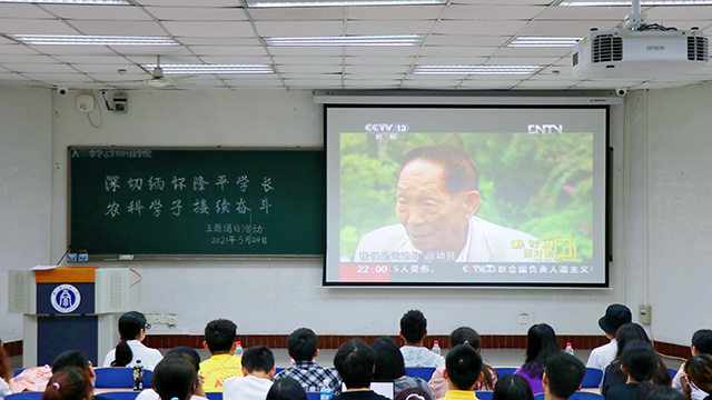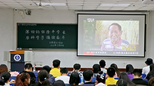 活动最后,在场同学们就“如何继承和发扬隆平学长的精神,在农业科学领域接续奋斗”交流发言,字字句句饱含深情,忍不住哽咽,藏不住悲伤,更强烈的表达了要学习袁隆平学长精神,在农业科学领域接续奋斗,为乡村振兴、农业发展、国家富强、民族振兴贡献自己的青春力量的信心和决心。