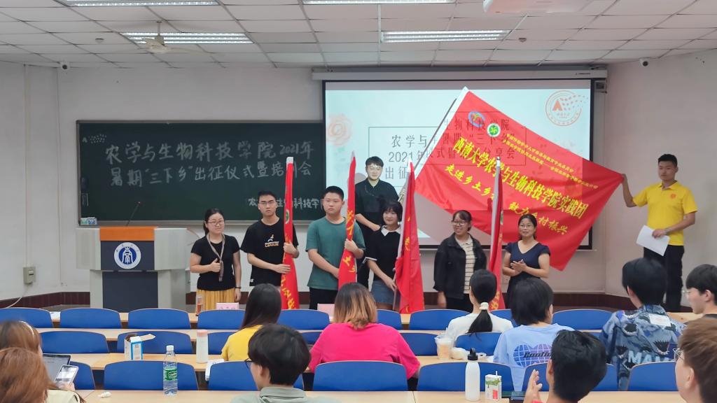 为开展好暑期三下乡社会实践活动,响应“2021年全国农科学子联合实践行动”,2021年7月2日上午9点,公司举行2021年暑期三下乡出征仪式暨培训会,为即将出征的各社会实践队伍授旗并做调研、宣讲、支教等活动如何有效开展及实践过程安全、实践成果宣传等方面专题培训。公司党委副书记郑莉佳老师、团委书记许莹竹老师出席会议。