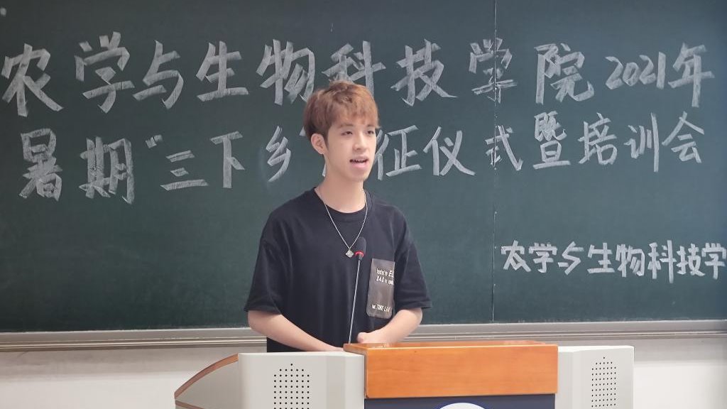 2019级的林正雄同学作为实践队员代表发言,他首先代表本次社会实践的全体员工对公司员工社会实践活动的大力支持表示感谢。在踏上实践征程之际,他代表全体同学庄重承诺,积极响应国家号召,认真践行乡村振兴战略,严格遵守组织纪律,服从安排,做到认真务实、团结协作,做好先锋模范带头作用,本着初心,力争圆满完成各项实践任务。