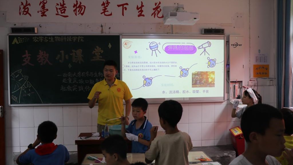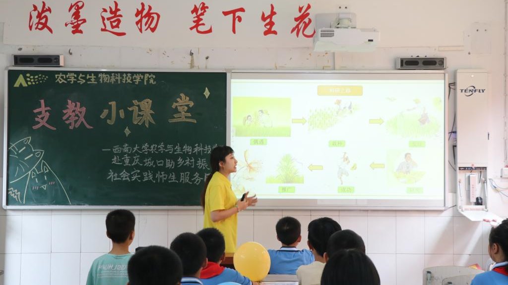 7月9日,bevictor1946韦德官网赴重庆城口助乡村振兴社会实践师生服务队前往重庆市城口县咸宜中心小学,先后参与了捐赠授牌仪式,开展了以“课堂实验传知识,隆平精神永流传”为主题的乡村支教志愿服务活动,通过农业知识科普义务支教为当地的孩子们宣讲袁隆平精神,普及植物科学专业知识,激发孩子们对于农业科学的兴趣,为他们种下一颗梦想的种子。