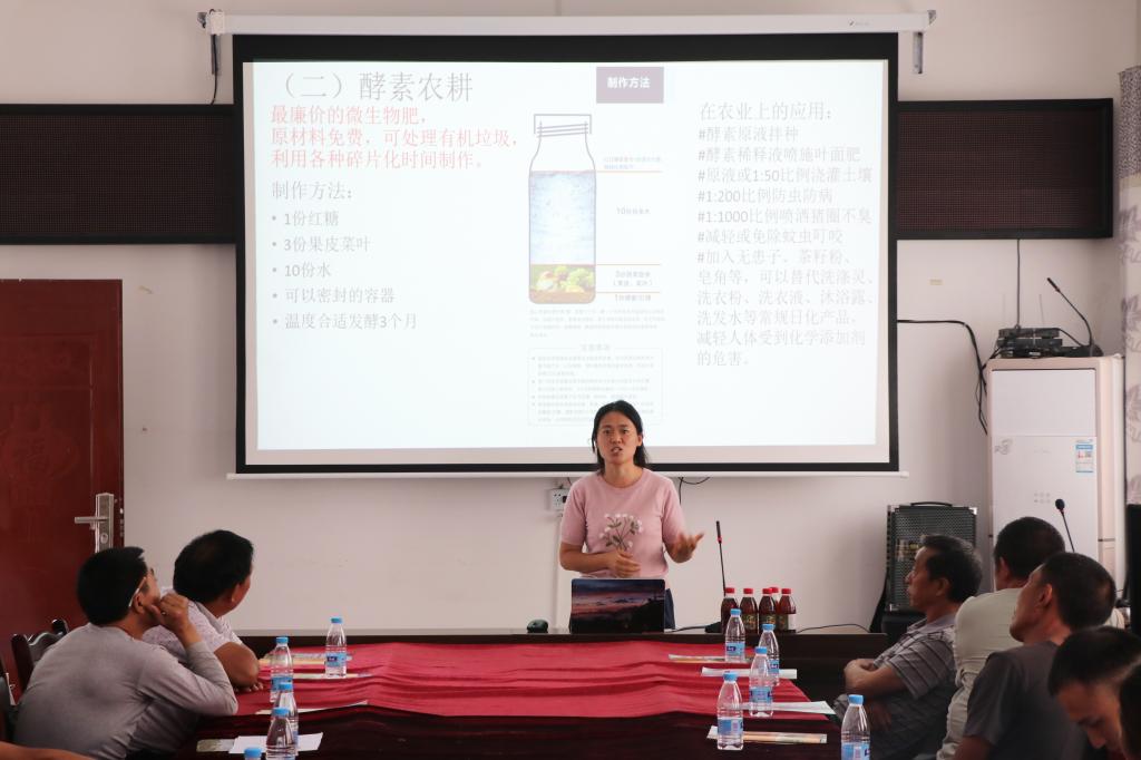 “民以食为天,食以土为根,土以人为变”,良好生态环境是农村最大优势和宝贵财富。bevictor1946韦德官网生态学专家张赛老师,就社会化生态农业向广大村民开展了知识普及性的农技知识讲座,从专业性、实践性的角度,向村民们普及了土壤健康、绿色农业、农业的可持续发展等相关知识,重点介绍了堆肥和酵素农耕技术并分享了实操经验,帮助村民更好地平衡产品供给与农业生态环境的关系。为帮助当地村民更好地了解掌握科学的种植技术,实践队员在活动策划阶段,查阅文献,收集资料,针对当地种植作物的具体情况和特色,专门制作适合城口作物的种植科普指南分发给农民,图文并茂,言简意赅,为当地特色作物的栽培和种植给予了简明而直接的技术指导。