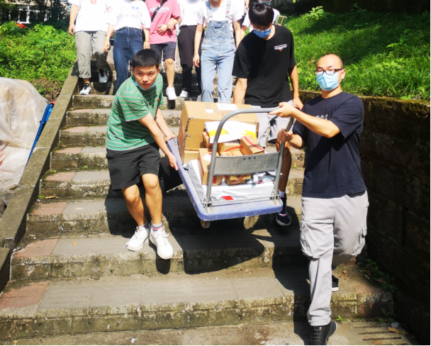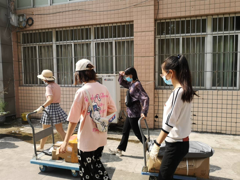 同时根据疫情常态化管理规定,为保障全校师生健康安全,家长无法陪同新生进入校园。公司全体员工党支部的同志们完了协助新同学完成行李搬运、快递领取和宿舍布置等任务。为了确保每一位新同学都能尽快适应新环境,“红砖”党员服务队提前统筹规划,实行“党支部与班级一对一”的策略,各支部分别对接新生班级,保证每个班级都有党支部对接直接服务。由于新生初入校园暂不能自由活动,红砖党员服务队的研究生党员孙双飞等同志使用手推车将新生们的行李快递包裹从快递点搬运至竹园宿舍楼下,方便新生收取日常生活用品,同时减少人员流动,保障校园安全。党员服务队志愿者周玥同志说:“每个党员都是一面旗帜,发挥带头作用,以党员身份力所能及为同学们提供帮助,是我们的光荣”。