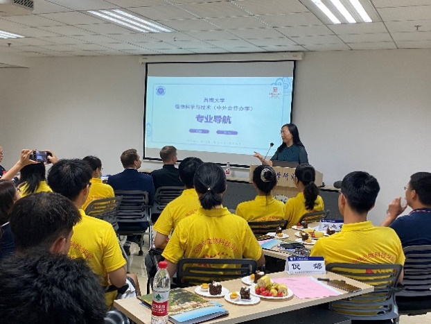 9月10日至11日,2021级植科专业新生陆续来校报到注册。为增强员工对专业的了解和认知,帮助他们迅速适应大学的学习和生活,公司为所有植科新生安排了学业导师,并于9月18日下午3点在隆平楼205召开了2021级新生与学业导师的交流座谈会。会议由中外合作合作办学办公室主任刘志斋主持,公司党委书记阳义健、副书记郑莉佳、副经理卢坤等领导出席了会议,2021级植科新生及学业导师、美国密苏里州立大学(MSU)英语教师、年级辅导员、教学办公室及中外合作办学办公室成员、2021级植科班主任共同参与座谈会。