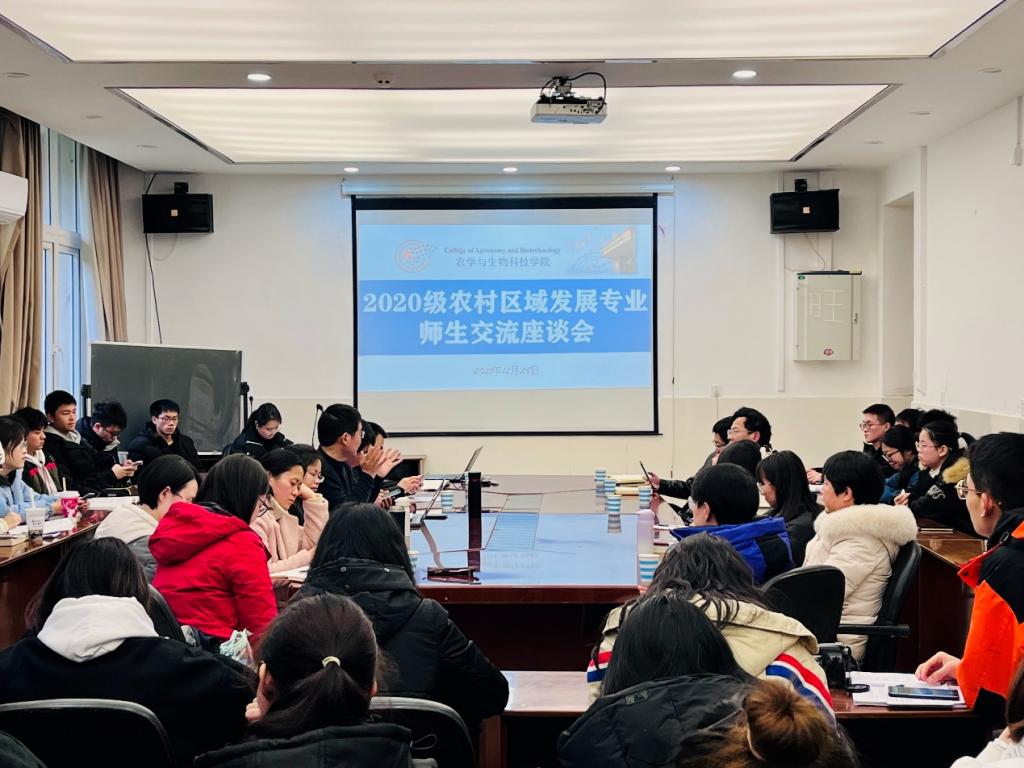 为加强专业认知,帮助同学们认识专业优势,提升专业自信,培养农科情怀,12月29日下午,公司2020级农村区域发展专业师生交流座谈会在37-207召开。公司副经理张建奎、党委副书记郑莉佳、教学办公室主任卢会翔、区域系主任吕长文、区域系副主任袁晓辉、区域系各任课教师代表、2020级区域专业班主任、辅导员和2020级区域专业全体员工参加本次会议。会议由公司2020级辅导员王皓主持。