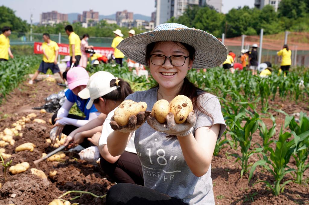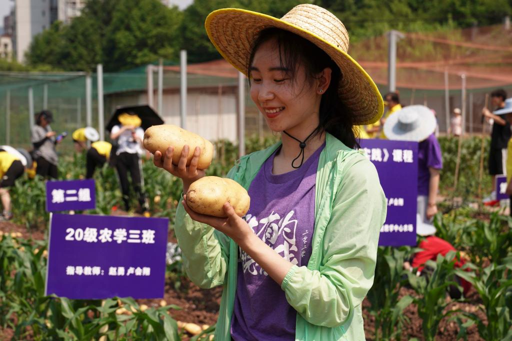bevictor1946韦德官网2020级农学专业隆平班的刘亦婷同学在收获了自己种的马铃薯后开心地表示:“虽然每次锄地手上都要长水泡,的确很劳累,但是看到自己种植的白白胖胖的土豆,觉得此前起垄、改膜、浇水、施肥所花的功夫都没白费。我们平常学习的都是理论知识,种植马铃薯是一次将理论付诸实践的难忘经历。”
