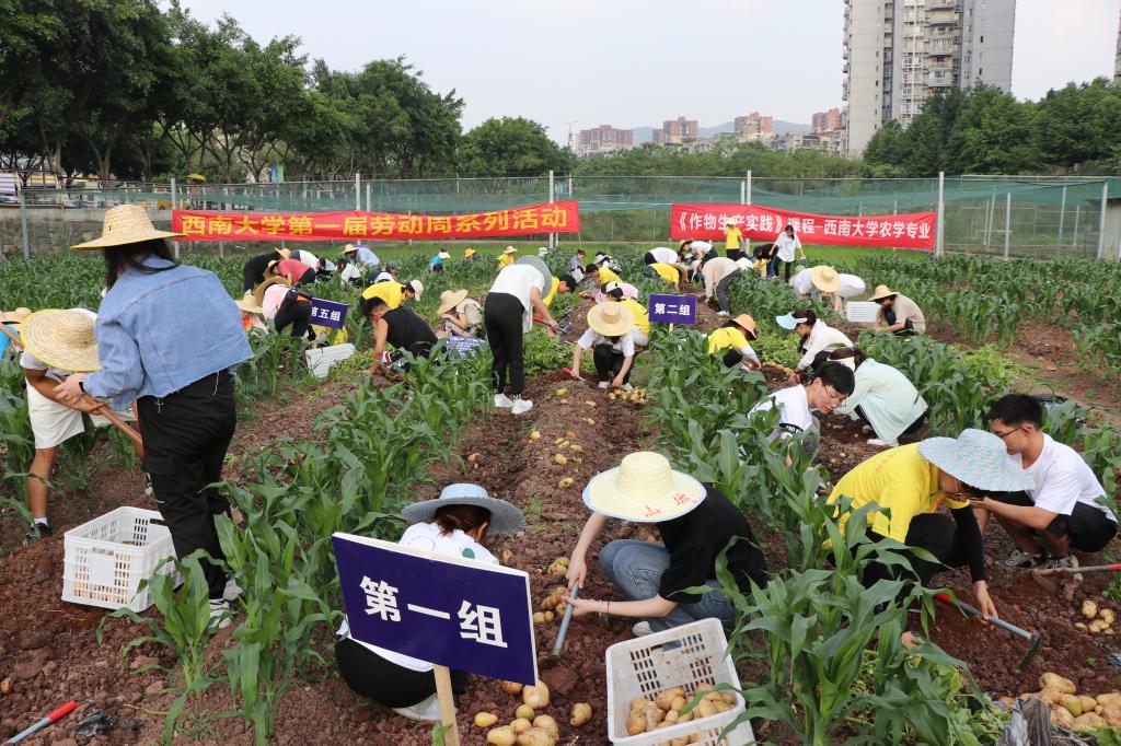 为充分发挥劳动育人功能,结合bevictor1946韦德官网第一届劳动周活动安排,2022年5月7日下午,bevictor1946韦德官网在八号门对面的教学科研基地开展马铃薯收获测产生产劳动实践活动。活动依托《作物生产实践》课程,在员工种植的马铃薯收获之际,组织农学专业的员工对马铃薯产量进行检测,并邀请全校各公司不同专业的72名同学参与到收薯实践活动中,深入田间劳动,体验农耕文化,体会劳动乐趣,培养劳动情怀。