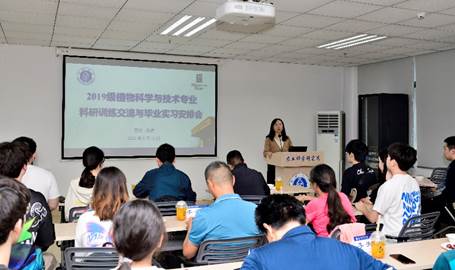 副经理张建奎讲解了植科专业科研训练制度的内容与要求,强调科研训练是必修课程的一部分,同学们需认真对待,以严格的标准自我约束,自主、自觉地完成训练任务,增强实践技术储备,实现个人的全面发展。而后,张经理对2019级植科专业毕业实习相关事宜作了部署安排。
