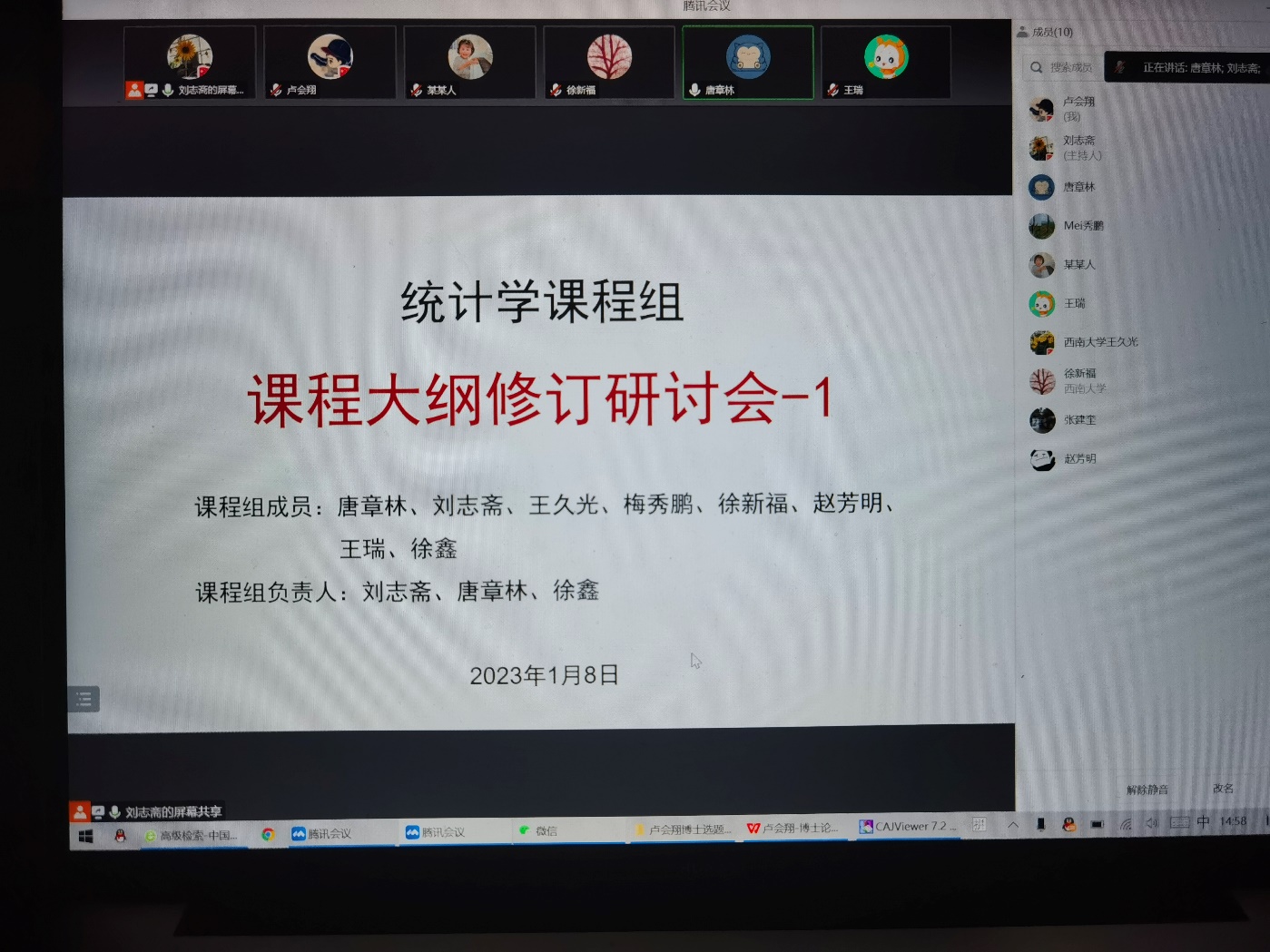 刘志斋作为课程组负责人之一首先介绍了课程组的基本情况,随后,课程组的8位老师,结合各自的教学工作,依次汇报了对所承担课程在教学目标、课程内容与重难点、课程的考核与成绩评定、课程思政等方面的思考。在讨论交流环节,课程组负责人之一唐章林教授指出,鉴于所有课程均涉及理论与实践实训,要求各位老师在大纲修订的时候,要明确各课程在“统计学”层面上的共性,以及在落实专业人才培养层面上的差异性,明确课程的教学内容及重难点,建立相对一致的课程考核和评价体系。