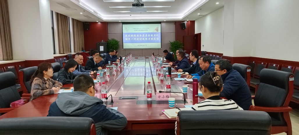 2023年3月21日,四川省安岳县县委副书记鄢华一行到公司交流座谈,洽谈合作。公司党委书记阳义健、经理吕典秋出席座谈会。