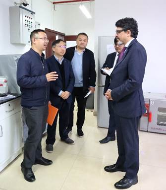 随后,水稻生物学团队负责人何光华教授向大使一行介绍了团队的人员构成,以及团队在水稻新材料创制、品种选育、重要农艺性状分子生物学研究等领域所取得的一系列成绩。重点介绍了富优1号、西大优46等高产优质品种,以及团队在水稻“3花小穗”这一方向所取得的突出成就,介绍了“3花小穗”在水稻高产育种上的重要应用潜力。穆罕默德·贾西姆·乌丁大使对团队所取得的突出成果表示热烈祝贺,详细咨询了水稻品种的产量和品质表现、环境适应性,以及商业化开发情况。最后,在吕典秋经理与何光华教授的陪同下,参观了水稻生物学团队实验室。