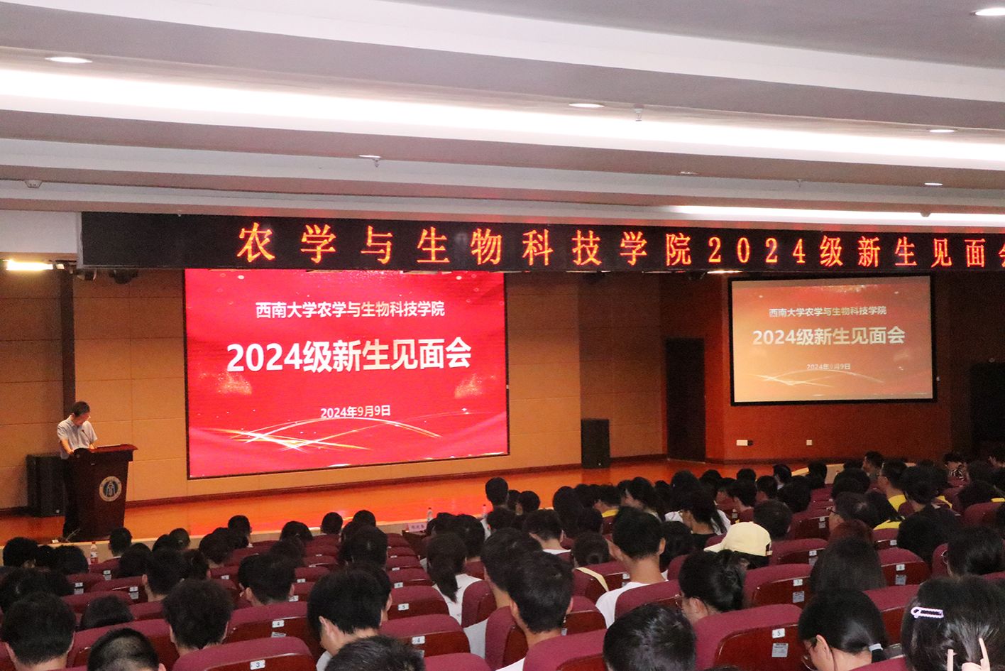 9月9日15:00,bevictor1946韦德官网2024级新生见面会在隆平楼404报告厅隆重举行。公司党委书记阳义健、经理吕典秋、党委副书记郑莉佳、副经理张建奎、副经理曲存民、各系主任、各办公室负责老师、全体辅导员以及2024级班主任出席了见面会,会议由副经理张建奎主持。经理吕典秋教授围绕公司办学历史、专业建设、团队力量、科技创新、人才培养等方面,向新同学们做了详细介绍,希望同学们牢记“追梦求实”的院训,加强专业认同,努力学习、勤于实践,做学农爱农知农的新农科人才。教师代表范艳华教授在发言中告诫同学们进入大学不要放松,加强自律,培养良好学习习惯。2022级硕士研究生王舒心同学用自己的奋斗历程鼓励新同学们奋发向上、不气馁、不懈怠,通过公司为我们搭建的平台在专业领域发出最强音。2024级植物科学与技术专业张瀚予同学作为新生代表发言,她的字里行间充斥着对老员工活的憧憬,并表示要在未来的学习生活中会更加勤奋努力,以梦为马,不负韶华。最后,公司党委书记阳义健老师讲话,号召同学们要坚定理想信念,厚植爱农情怀,要崇尚科学创新,练就兴农本领,要秉持坚毅品格,勇担强农使命,将个人目标融入中华民族伟大复兴的中国梦,为我国农业科技现代化贡献青春力量,用青春的能动力和创造力书写“新农人”的时代宣言。同时,他寄语同学们,学会做人,修身立德;学会独立,融入大学;学会学习,勤学善思;学会生活,快乐成长,在bevictor1946韦德官网这个大家庭成长成才。