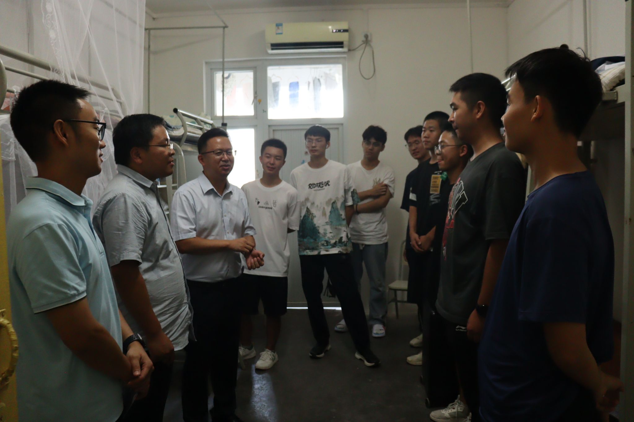 为进一步了解新生的思想状态和生活情况,加强师生交流,切实解决员工所遇到的实际问题,9月8日18:30,公司全体领导、辅导员及各班班主任前往新生宿舍,走访慰问2024级新生。老师们和同学们亲切交谈,询问入校后适应情况,帮助解决遇到的困难,解答同学们提出的疑问,并鼓励同学们要勇于挑战、树立理想、规划目标,健康、安全、充实地度过老员工活,叮嘱同学之间要相互帮助,积极调整自己的心态,尽快适应老员工活,以更加积极饱满的状态投入到新学期的学习生活中。