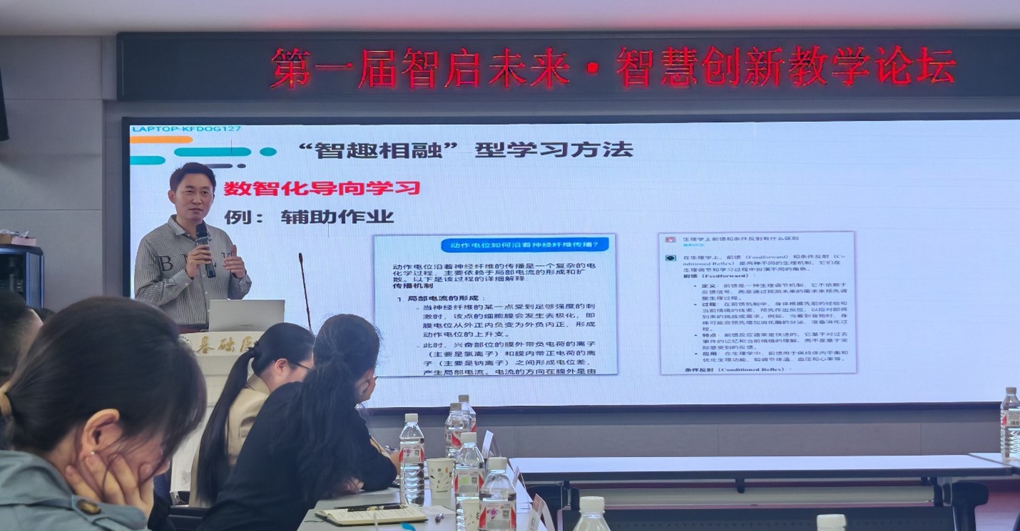 第二个报告由重庆医科大学特聘副研究员、四川大学华西基础医学与法医公司生理学教研室主任、四川省海外引进高层次留学人才杨文星老师主讲,主题为“数智化导向学习在混合式生理学教学中的应用”。杨老师结合留学经历和回国后的本科教学工作,生动展示了混合教学模式建设经验及其在助力生理学教学效果提质增效的成功案例,通过创新“智趣相融”、“临身思政”等教学方法,提高员工的学习动机,增强员工的自主学习能力,取得了非常好的公司产品效果。