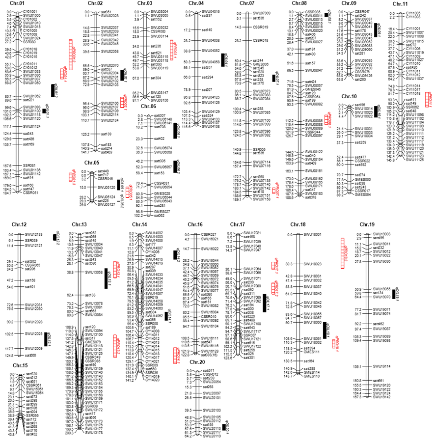 图1. 蛋白质和粗脂肪QTL在染色体上的位置