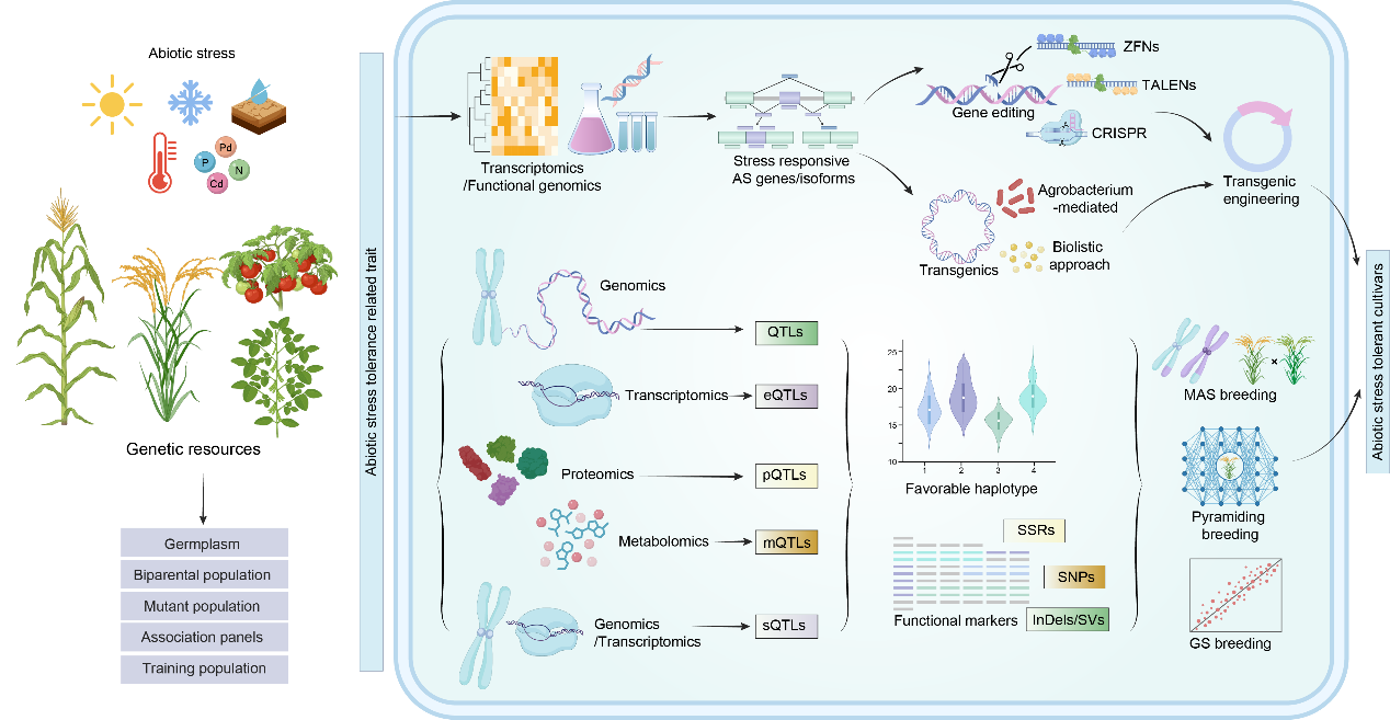 论文进一步围绕AS的调控机制及遗传特点,提出通过基因编辑剪接位点或优良剪接异构体的直接利用以及基于群体水平sQTLs的分子育种策略两条路径,培育抗逆作物。通过精细调控基因在不同环境条件下的剪接方式,作物能够更快速、灵活地响应各种非生物胁迫,为通过操纵AS改良作物抗逆性提供了全新范式,其价值不局限于抗逆育种,更为作物遗传改良的多元化发展提供了新思路。未来,随着人工智能的发展、多组学技术与分子育种手段的深度融合,基于AS的精准调控有望为培育高产、稳产且具广泛适应性的作物新品种提供全新路径。