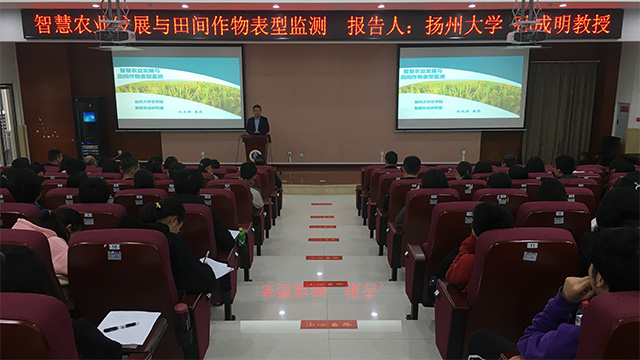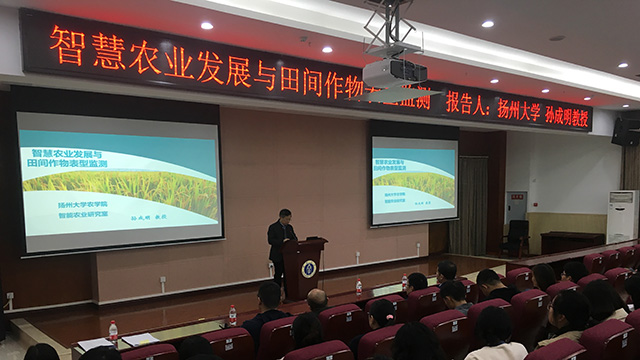 11月13日下午,隆平楼204报告厅,扬州大学农公司孙成明教授应邀到公司作题为“智慧农业发展与田间作物表型监测”的学术报告。报告会由经理何光华教授主持,公司200余名师生聆听了报告。
