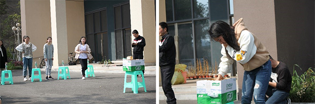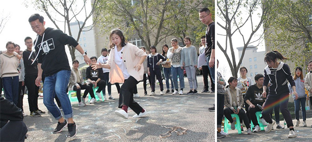 接下来的一个游戏为步步高升。既锻炼体力又考验脑力,为了节约时间,同学们健步如飞,头脑和肢体并行,数字口令一出,就犹如飞起来似的,几乎一跃到了终点,一旁的同学加油喝彩,场面一度沸腾,真是令人感叹不已!