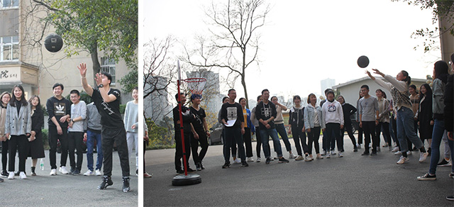最后一个游戏是幸运投篮。有的女生巾帼不让须眉,投起篮来丝毫不弱于男生。她们一跃而起,身手矫健,眼神坚定,一眨眼球就顺利地入了框,引得在场多少男生女生的羡慕啊!