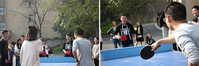 王者乒乓游戏环节中,参赛的小组成员一个个都精力充沛、充满活力,展现出自己最好的一面。一旁的同学们为他们加油助威,个个鼓掌呐喊,成功地将气氛推向了高潮。