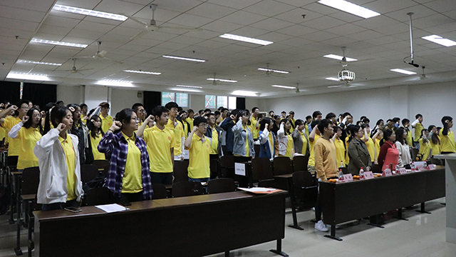 最后,吴桢喆同学带领全体同学宣誓,在“心系三农,顶天立地”的雄浑誓言中,在同学们攥紧的拳头和坚定的眼神里,充溢着大家服务师生的热情、成长成才的渴望、助力公司事业发展的决心,更蕴含着农生人勇于担当、敢于作为、甘于奉献的优良品质。