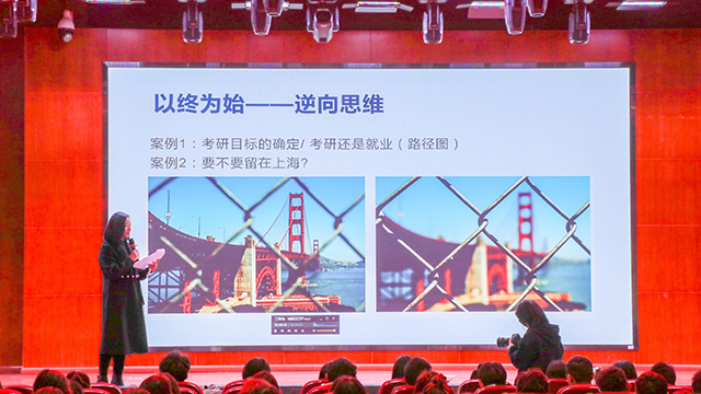 讲座伊始,田老师以具体的问卷调查数据和演员李冰冰获奖等典型案例向同学们深入阐述了求职提前做好准备的重要性,及早思考职业规划,方能赢得掌握未来的主动权。除此之外,田老师带同学们进行了一场“穿越时空”的想象体验。在舒缓的伴奏声中,同学们闭上双眼,十年后、五年后、三年后、一年后……未来的职业蓝图在同学们的脑海中徐徐展开,转换思维,步步倒推,奋斗路径逐渐明晰。紧接着,田老师向同学们介绍了“以终为始——逆向思维”的思考方法:当你在人生的迷宫中感到迷茫之时,不妨从出口向内走,转换视角即可豁然开朗、柳暗花明。同样的两张图,聚焦的远近不同,看到的风景也就不同。无论是考研还是找工作,切忌好高骛远,选择适合自己的才是王道。坚定地眺望远方,就不会被眼前的障碍所迷惑。在此基础上,针对“考研还是就业”、“如何合理建立考研目标”等问题,田老师进行了细致入微的讲解,向同学们展示了“老员工就业七大渠道”,同时给出了许多宝贵的建议。讲座中,田老师提出了“绽放优势 把握核心竞争力”的观点:唯有抓住自身优势,提高个人价值的不可替代性,形成能力壁垒,方能决胜于职场。与此同时,紧扣个人特点,“不换行业换岗位”也不失为一个很好的选择。只有向世界展示出自己的个人才华,方能主宰自己的人生,否则,便很有可能被强者安排人生,随波逐流。那么,如何才能提高个人价值呢?“短时间内多付出,方能迎来快速成长。”田老师说道。她以“10000小时的刻意练习”为例,结合了诸多学长学姐的成长经历,旁征博引,向同学们提供了许多锻炼能力的好方法。