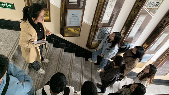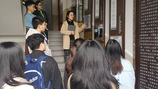 活动邀请了马克思主义公司近现代史专业的研究生张慧婷同学为大家讲解。讲解从马克思主义首次在中国被提出开始,结合重要历史人物、重大历史事件、重要历史概念,让大家深刻了解了马克思主义中国化的历程。从马克思主义为什么能在中国得到广泛的传播讲到中国共产党的诞生,从红船精神、井冈山精神、长征精神、延安精神、西柏坡精神讲到抗美援朝精神、雷锋精神、焦裕禄精神,从中共一大会址讲到遵义会议会址,从共产党宣言讲到人类命运共同体,从巴黎和会北洋政府代表(即当时中国政府代表)拒绝在《凡尔赛和约》上签字讲到2020年肆虐全球的新冠肺炎疫情下中国抗疫故事。讲解人沿着文化墙的历史脉络,不断与当今的重大事件相结合,生动的讲解了马克思主义中国化的历史进程。讲解中,张慧婷同学不断回应同学们关切的话题和自己的理论思考,引导同学们认识马克思主义中国化历程中党作出的伟大贡献、形成的理论成果、铸就的伟大精神,深刻领悟中国共产党人百年奋斗历程崇高精神。