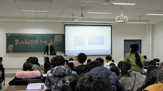 随着热情激昂的中国共产主义青年团团歌,第六期团校培训班开班典礼正式落下了帷幕。团课第一讲也正式开始。校团委副书记于涛为广大学员带来了“青年思想引领与新媒体建设”的专题讲座。他说我们应该成为“团控英雄”,引经据典、结合现实、剖析自身,为大家讲述了精彩的一堂课。与君初识如故人,听君一言胜读书。