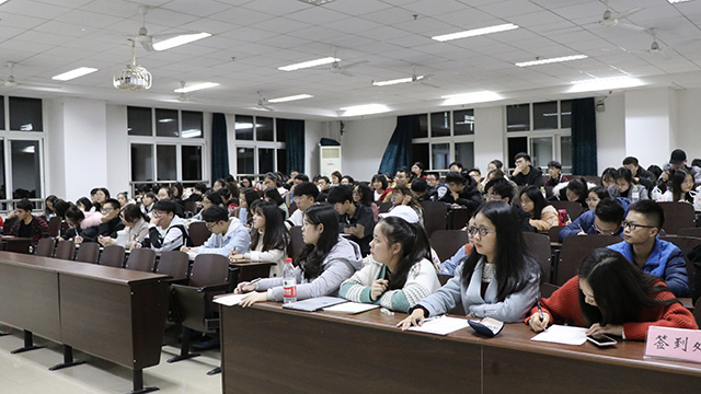 郑老师从新闻素养的概念说起,提醒同学们要用“点线面体”思维来发现并撰写新闻,又以自己的演讲经历为例,说到要注重新闻的切入,使新闻为自己所用。此外,郑老师还向同学们分享了他多年来积累的演讲技巧——“郑氏演讲十八法”,讲座的气氛被带向高潮。