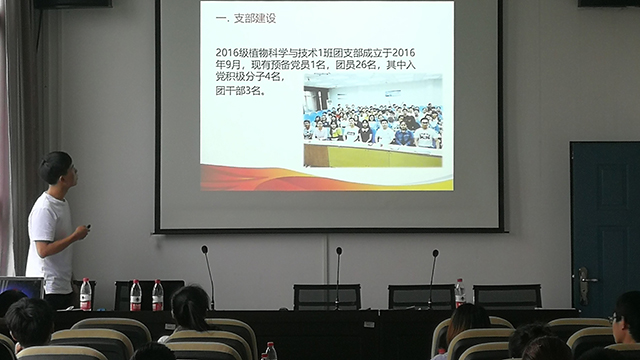“五四红旗团支部”的评选共有十一个团支部参与答辩,大会以讲解PPT的形式来展现本班团支部风采,包括“思想引领”、“团员管理”、“制度建设”、“特色团日活动”、“总结与展望”五个方面。2017级各团支部尽管成立时间不到一年,但他们以饱满的热情和青春的朝气展现了新集体的团结力。2016级各团支部经验丰富,再现了支部“田间学习”、“党团共建”、“清扫校园”等丰富的活动。2015级各支部展现的内容也丰富多彩,涌现出了座谈交流、实习交流活动等更多有意义的团日活动和月组织活动。各支部在答辩会中均展示出了基层团支部的青春与活力,团员青年的凝聚力和向心力。
