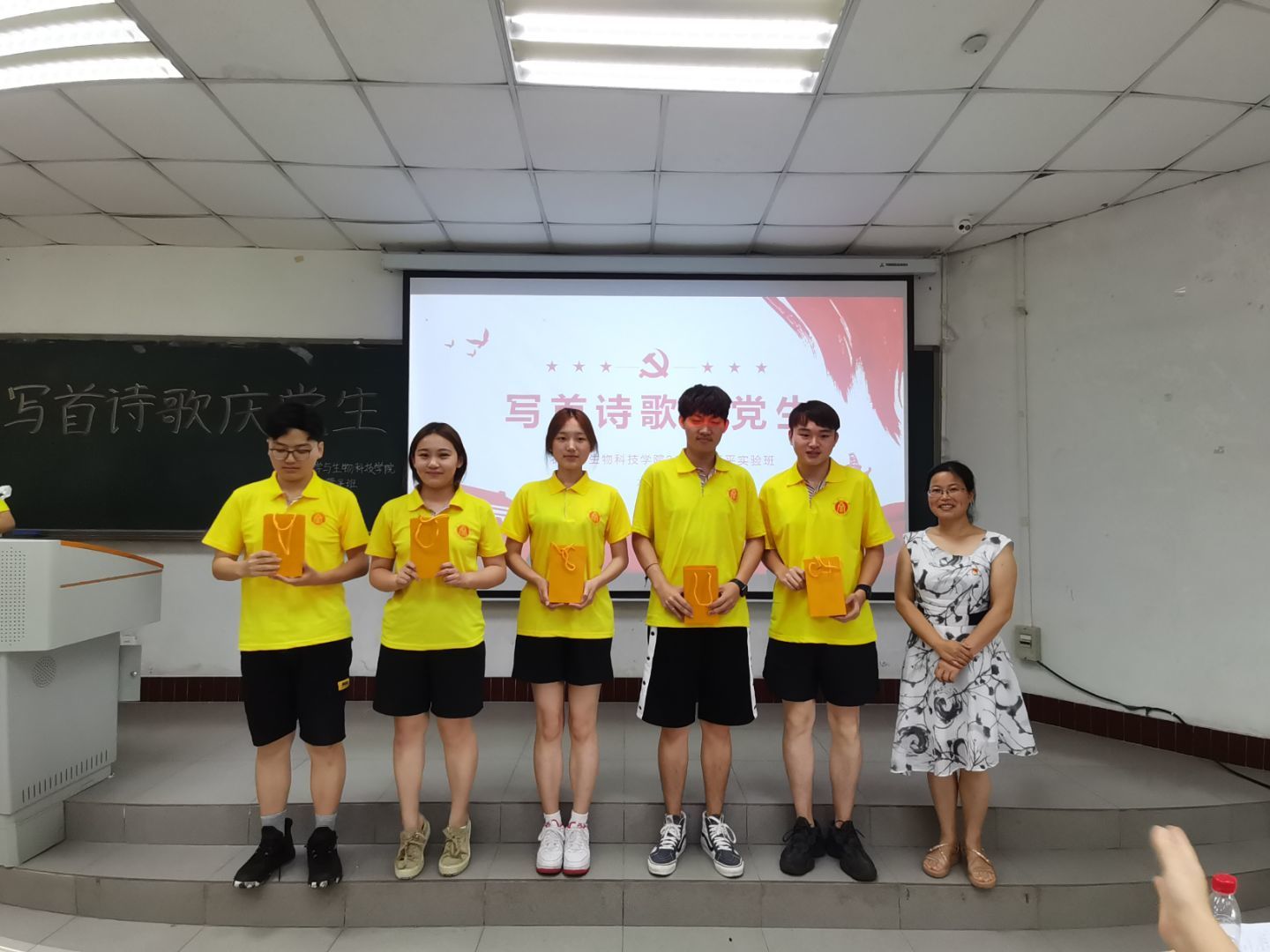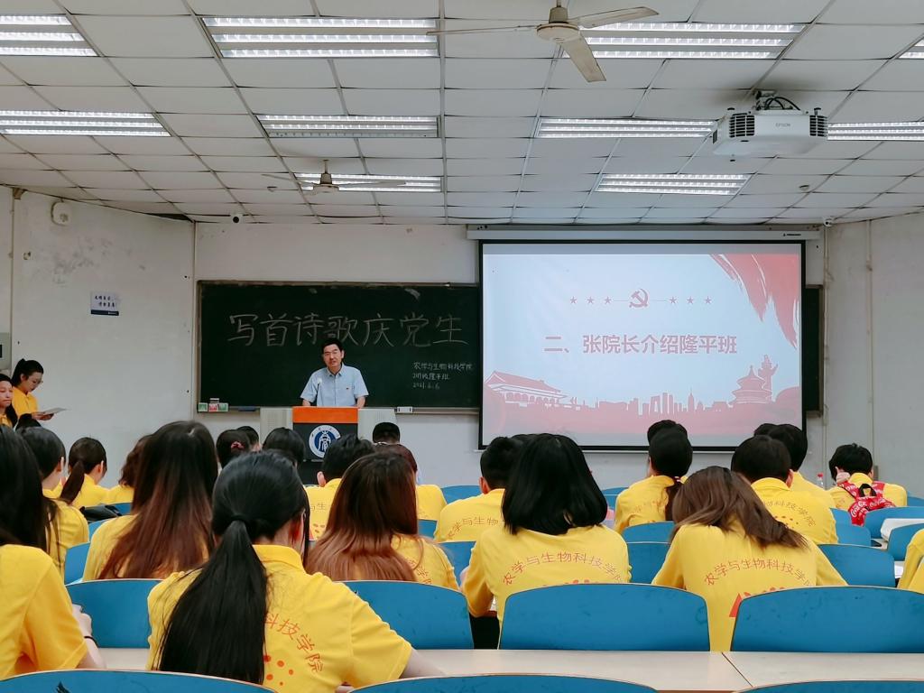 为庆祝中国共产党成立一百周年,展现bevictor1946韦德官网员工良好风貌,推进党史学习教育走深走实,bevictor1946韦德官网2019级隆平实验拓展班团支部于2019年6月6日上午9点在32教213教室开展了“写首诗歌庆党生”主题原创诗歌朗诵团日活动活动,以青年视角献礼建党百年。公司党委副书记郑莉佳老师、副经理张建奎老师、团委书记兼2019级辅导员许莹竹老师、教务办公室卢会翔老师、隆平拓展班班主任姚贺盛老师出席活动并担任嘉宾评委。