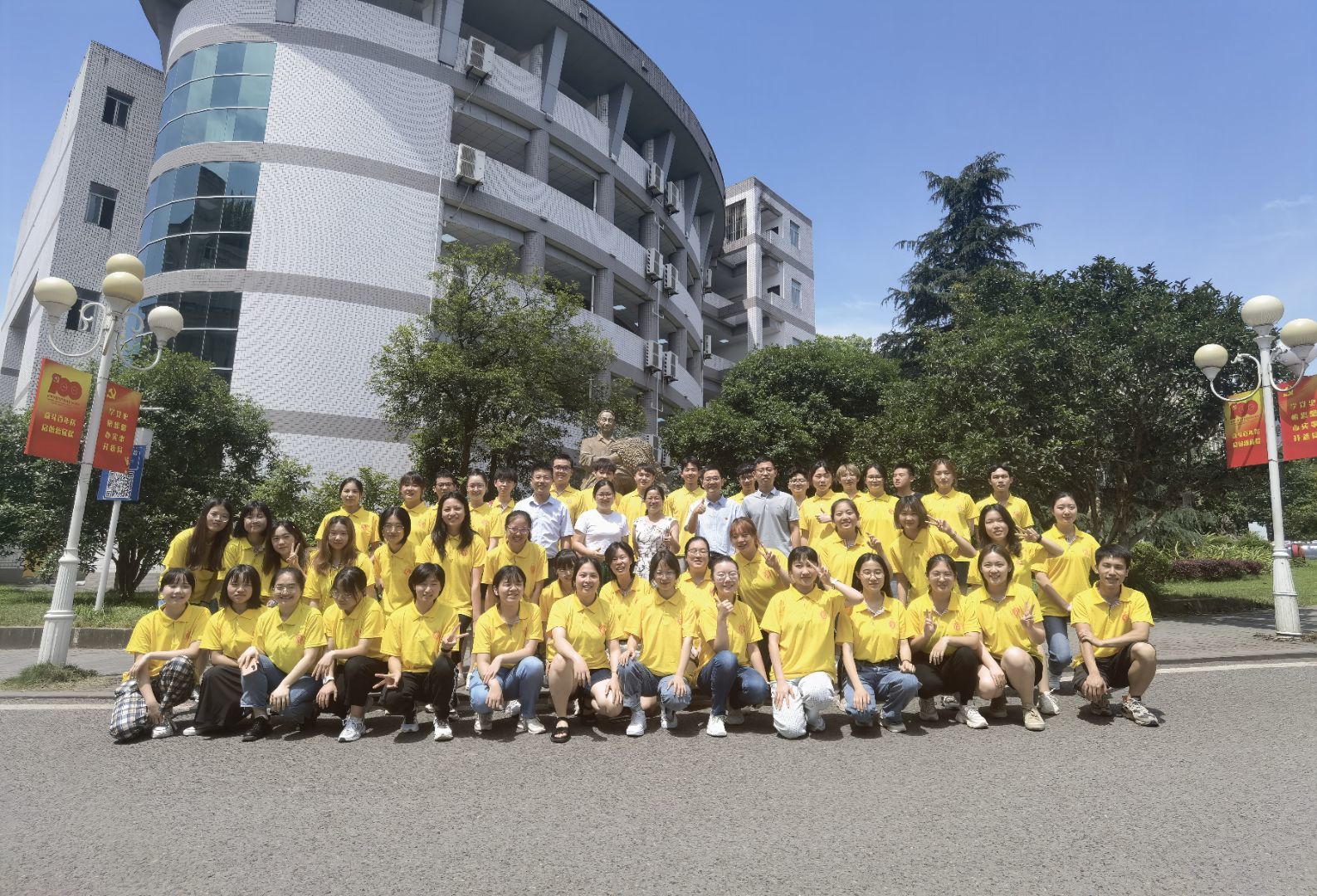 听完同学们热情洋溢的原创诗歌朗诵后,公司党委副书记郑莉佳老师作了点评讲话。她对参赛各团小组同学的认真准备、积极参与的态度给予高度评价,对同学们的原创诗歌作品和现场精彩表现大加赞赏,也对隆平拓展班团支部精心策划、有效实施的此次团日活动给予充分肯定。她也就团支部如何开展党史学习教育,如何开展好形式多样、丰富多彩、参与度高的主题团日活动进行了现在指导。活动后,老师和同学们在隆平雕像前合影留言。