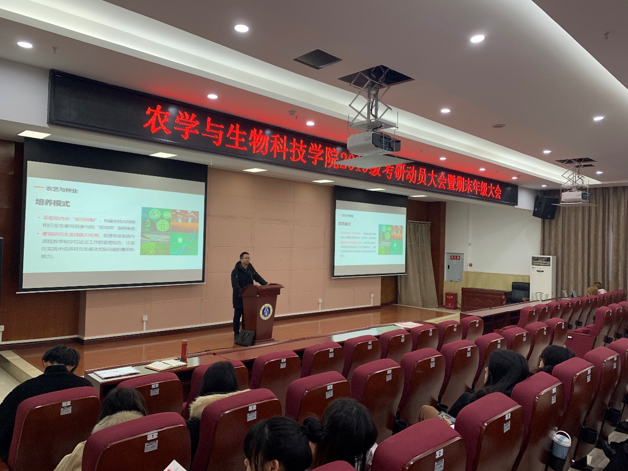 为加强对2019级员工的就业指导,调动员工考研积极性,帮助同学们准确定位目标,制定复习计划,力求在2023年研究生招生考试中有新的突破,1月5日上午9:00,bevictor1946韦德官网2019级本科生考研动员大会暨期末年级大会在隆平楼204报告厅举行。bevictor1946韦德官网经理吕典秋、公司研究生教学秘书李阳阳、2019级辅导员许莹竹出席大会并从不同角度为2019级同学分析考研形势。2019级全体本科生参加大会。