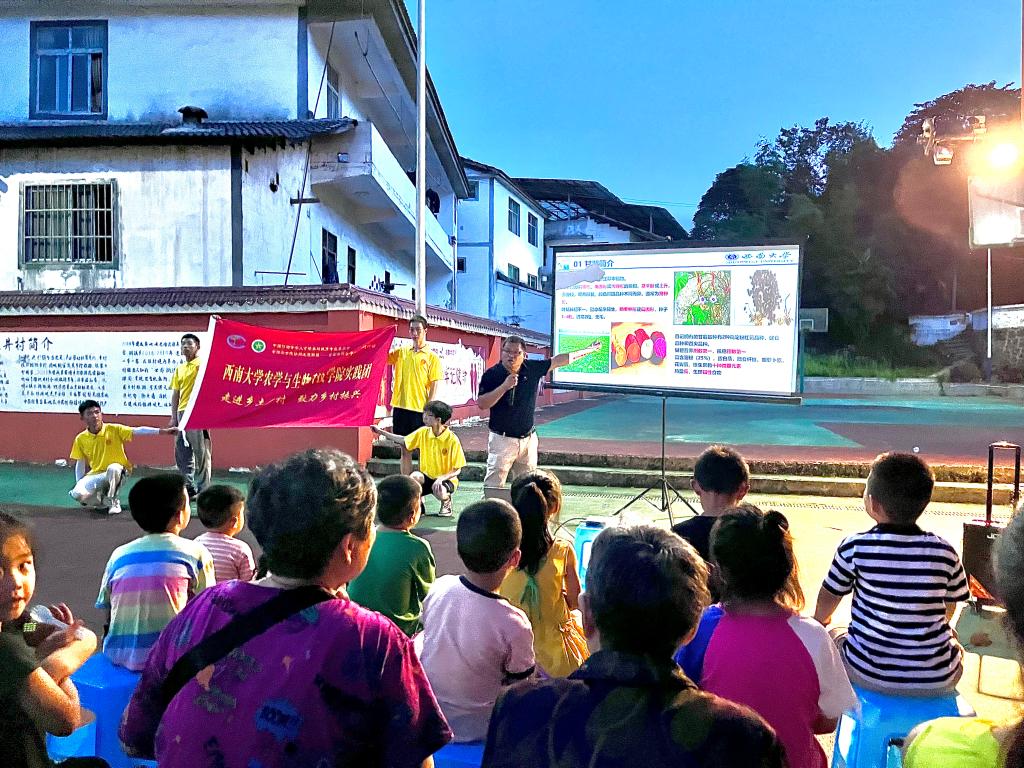 为帮助基层农户提高生产种植技术,助力当地产业振兴,7月10日晚上8点,实践队在润溪乡樱桃井村村委会广场举办了一场以“甘薯新品种、新技术、机械化种植”为主题的专题培训讲座,邀请公司甘薯育种专家唐道彬老师为当地种植农户详细讲解甘薯的新品种及种植技术、机械化种植技术、储藏技术。