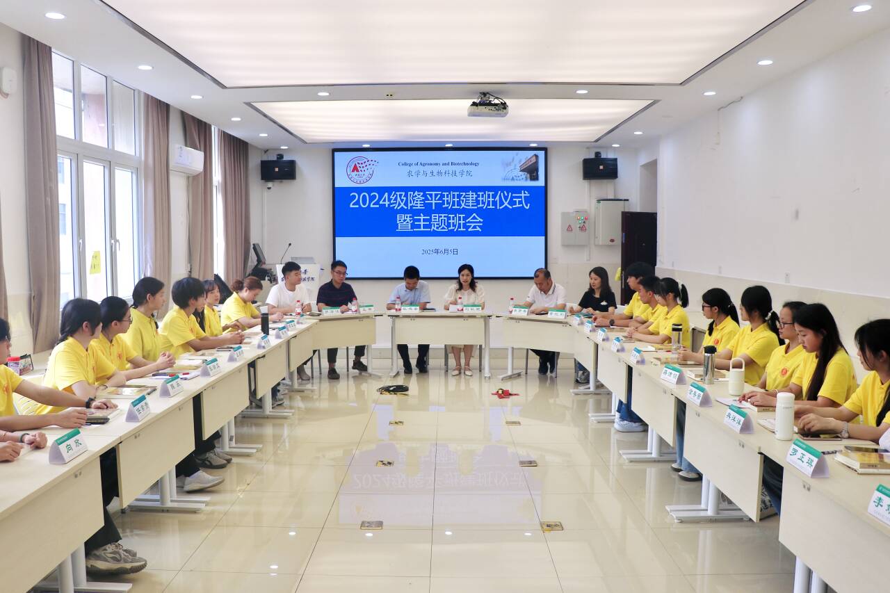 时值芒种,万物竞发。6月5日上午,公司在37教207会议室举行2024级隆平班建班仪式暨第一次班会。公司党委副书记刘秋艳、副经理张建奎,农学系主任桑贤春,2024级辅导员王皓,2024级隆平班班主任董红利,2021级优秀员工代表罗泽江出席活动,2024级隆平班全体同学齐聚一堂,共同开启这段充满希望与挑战的征程。