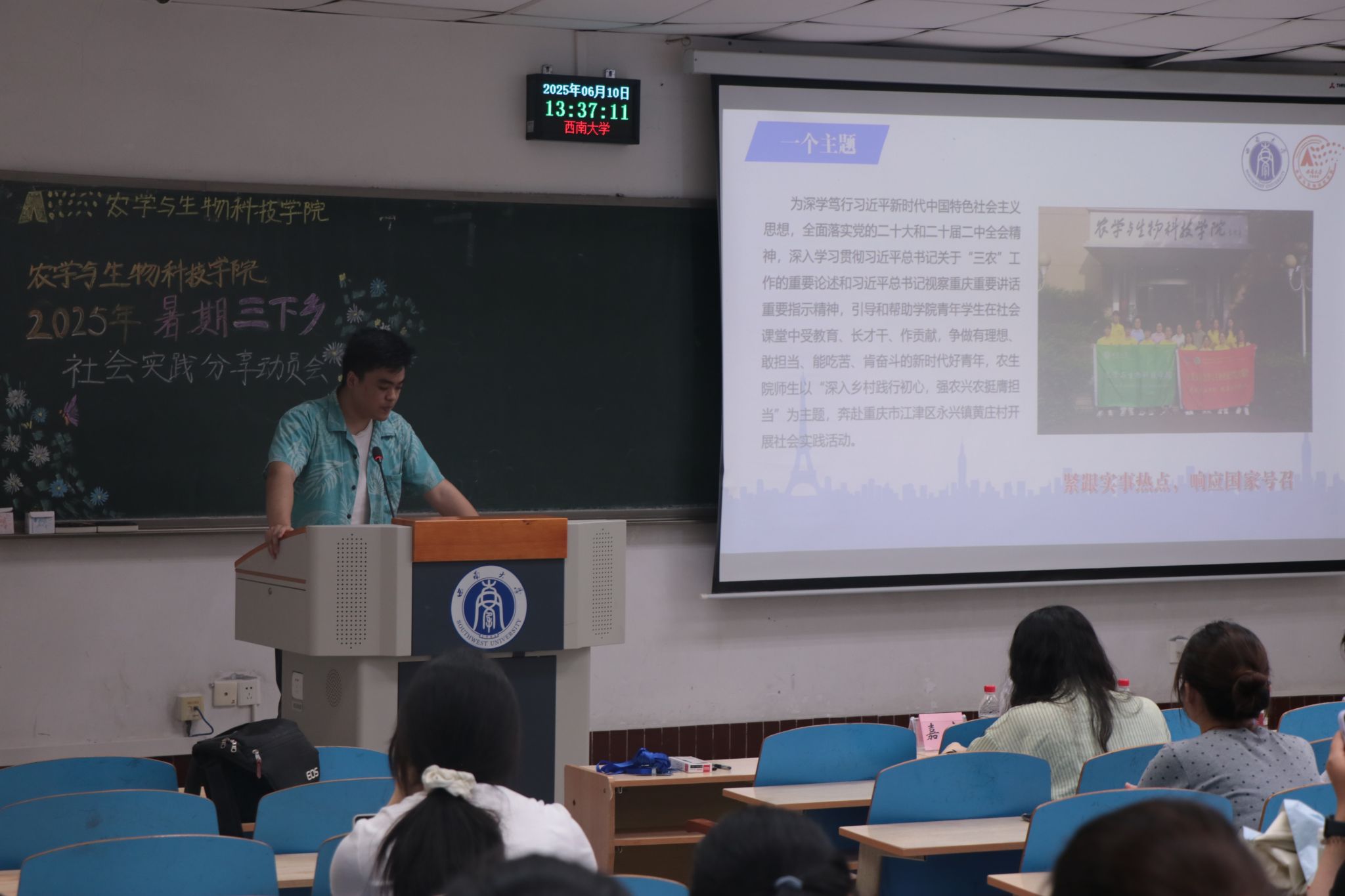 为深学笃行习近平新时代中国特色社会主义思想,全面落实党的二十大和二十届三中全会精神,深入学习贯彻习近平总书记关于“三农”工作的重要论述,引领青年学子在社会实践中受教育、长才干、作贡献,争做有理想、敢担当、能吃苦、肯奋斗的新时代好青年,bevictor1946韦德官网于2025年6月10日13:30在32教312教室举行了2025年暑期“三下乡”社会实践活动分享动员会。