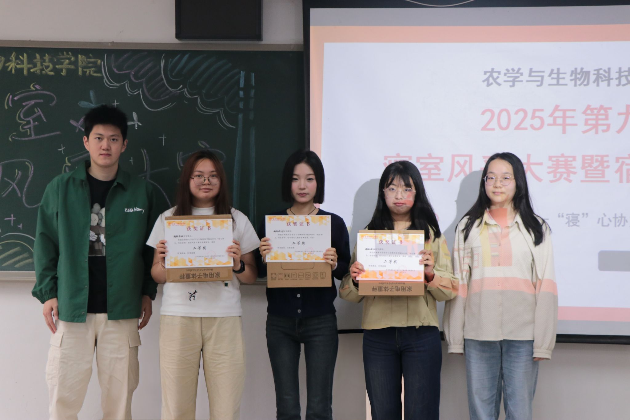 经严格评审,竹一204斩获一等奖,楠九336、楠九337和楠一448三个寝室获二等奖,楠一452、楠一433、楠九319、楠九338与楠九335五个寝室获三等奖。
