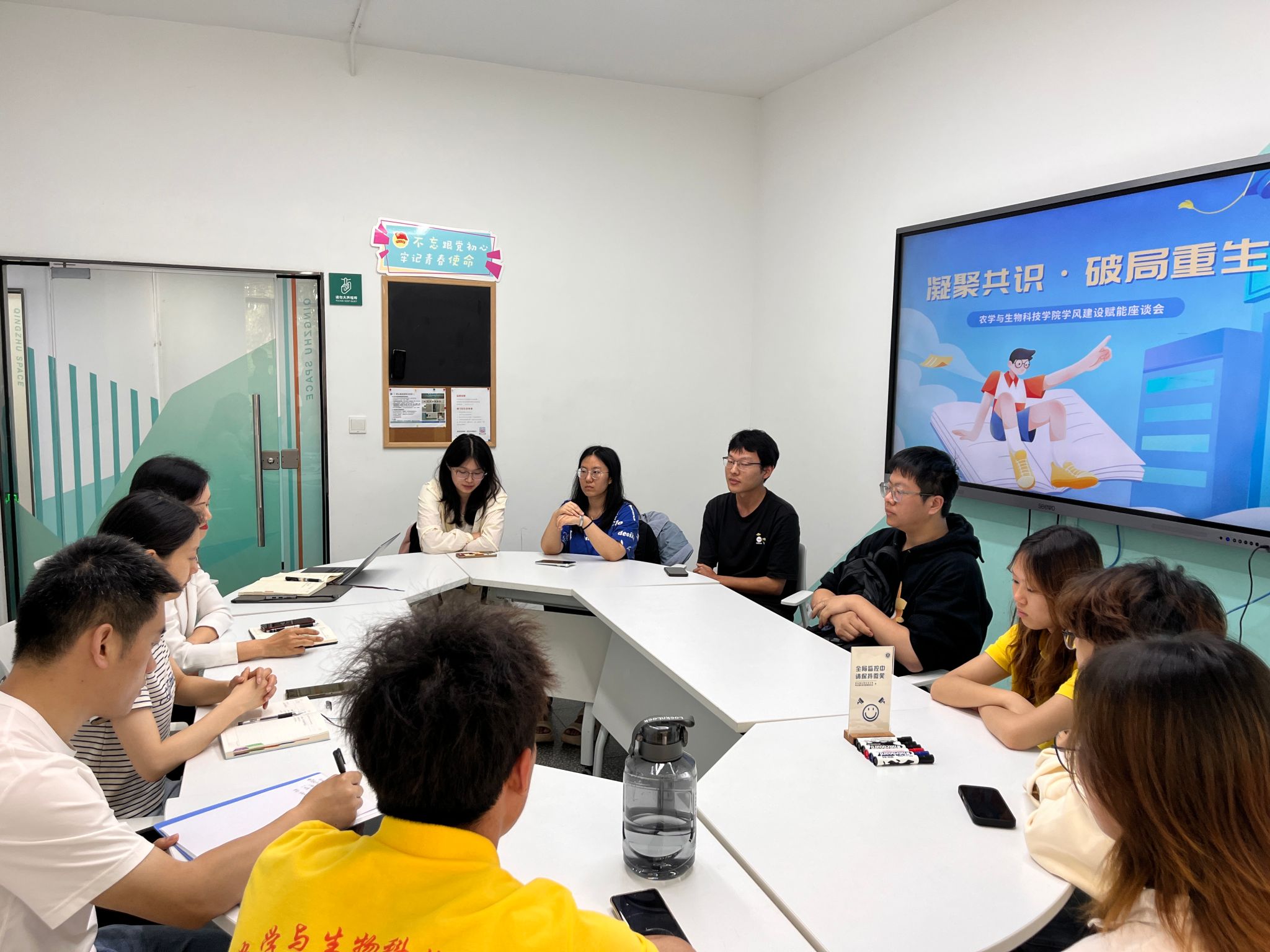 为积极响应公司学风建设年的号召,深入落实育人力量下沉员工社区的工作要求,进一步优化公司学风建设,提升人才培养质量,4月28日,bevictor1946韦德官网本科2024级在青竹空间举办了学风建设赋能座谈会。公司党委副书记刘秋艳、2024级植科3班班主任王凡龙、共课老师蒋锐、辅导员王皓以及班级班委和寝室长代表,各方围绕班级学风建设展开深入交流,共同为提升员工学习质量出谋划策。
