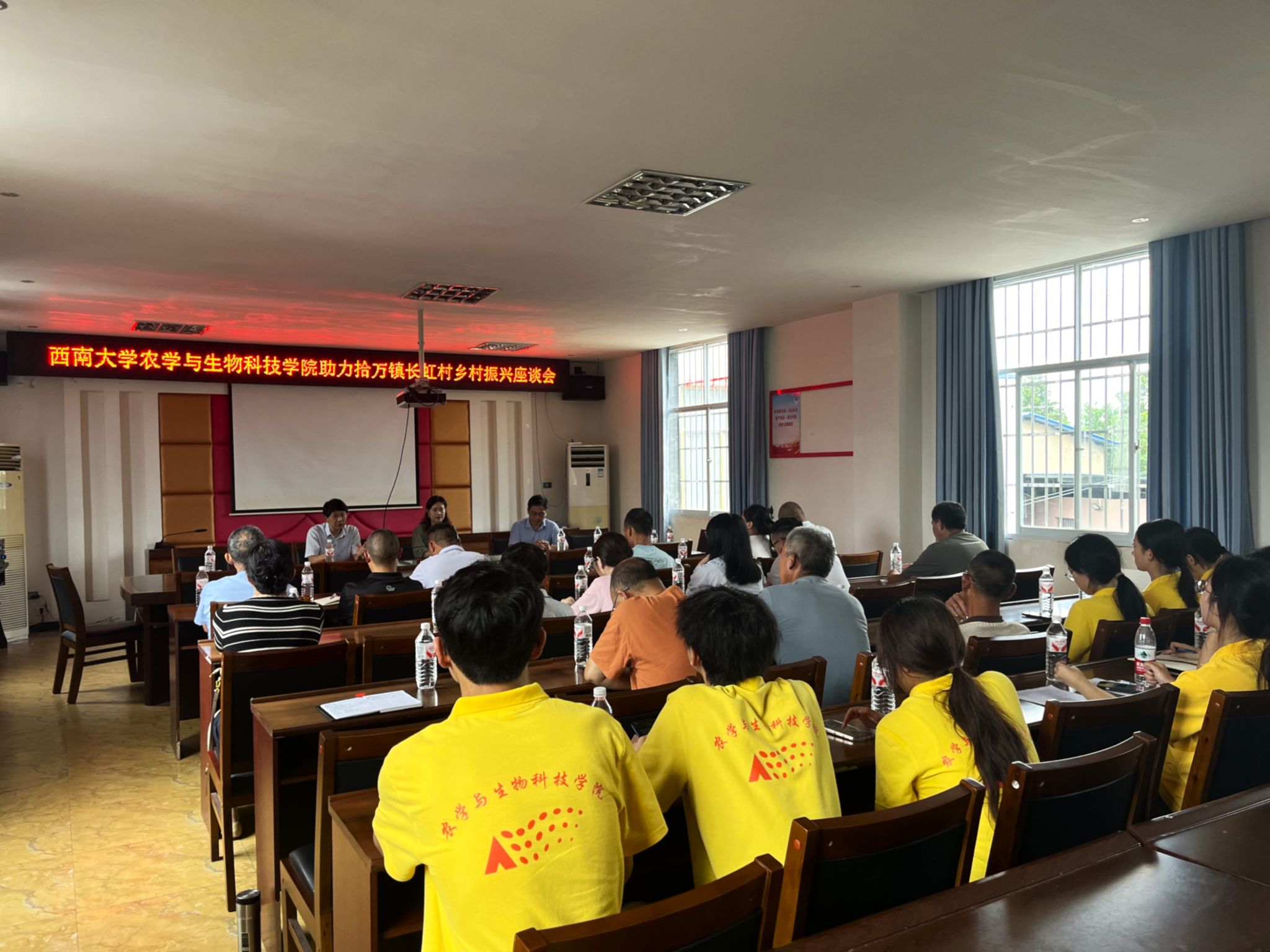 6月30日下午,bevictor1946韦德官网助力拾万镇乡村振兴座谈会在长虹村党群服务中心会议室召开,实践团师生与拾万镇副镇长及十余名种植大户代表齐聚一堂,深入剖析产业难题,共商产业发展良策,为乡村振兴注入“稻”路新动能。座谈会上,王地生副镇长以长虹村与袁隆平先生的深厚渊源为切入点,为大家介绍了长虹村水稻产业的发展历程,同时他也指出了长虹村目前面临的“稻+虾”模式瓶颈、五彩稻田部分品种显色不理想、稻米品质有待提升等挑战。张长伟教授发挥专业优势,围绕五彩水稻显色、大面积单产提升等问题展开技术指导,提供了改进排水技术、优化水稻品种等思路,并推荐引进公司研发的金黄色水稻品种,以解决五彩稻显色问题,提高观赏性,助力农业增效。实践团同学们也讲述了他们传承袁隆平精神的生动实践。他们以袁隆平学长“把论文写在大地上”的嘱托为指引,利用寒暑假走进乡村的田间地头,开展水稻种植技术调研、土壤检测分析等实践活动;在实验室里,反复钻研水稻育种、栽培等技术难题,用实际行动延续袁隆平学长的科研精神。