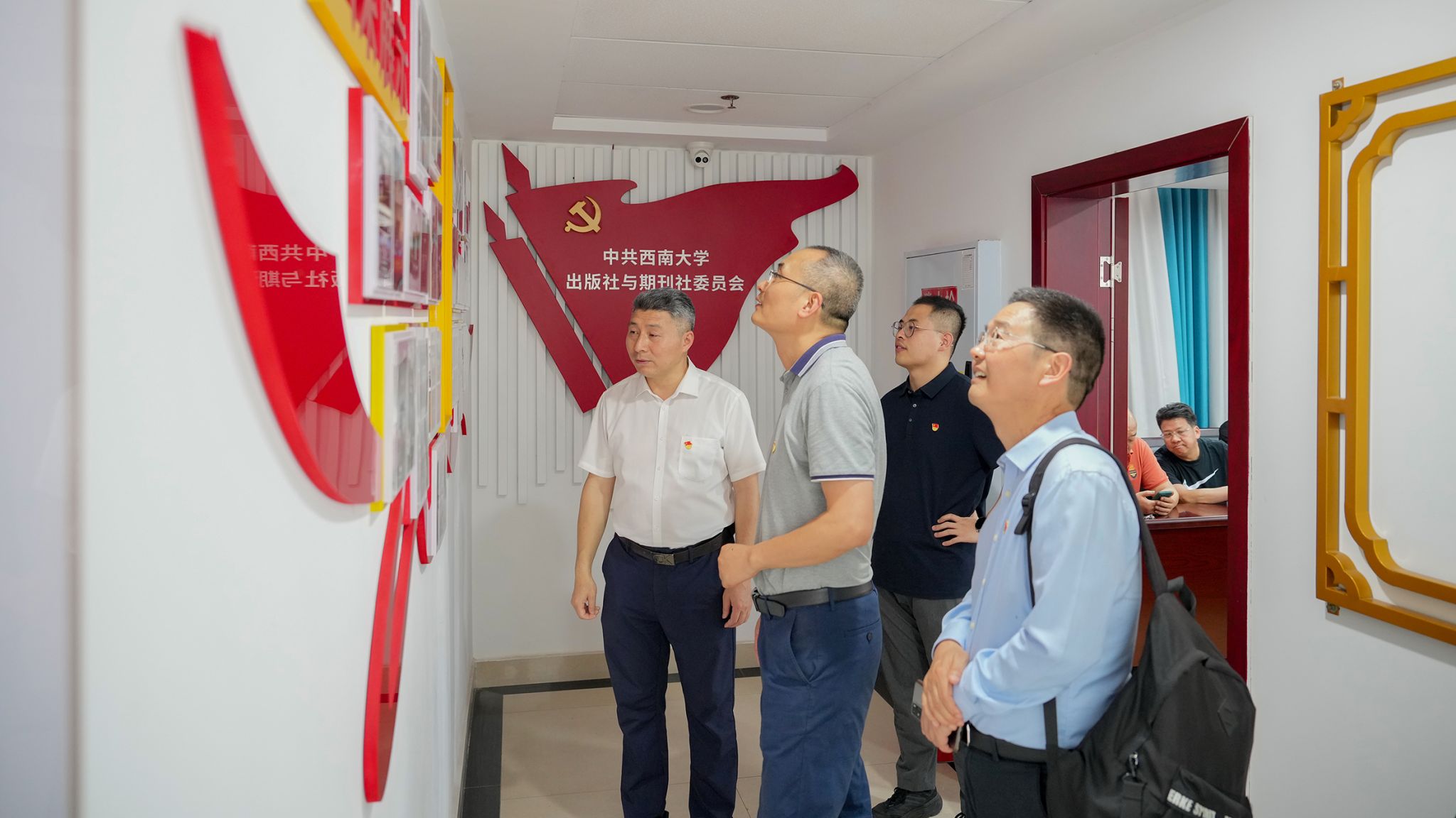 活动伊始,公司党委阳义健书记、张建奎副经理、支部书记张婷带领支部全体党员来到出版社新大楼。出版社与期刊社党委书记杨毅率出版社与期刊社党委第一支部全体党员热烈欢迎大家的到来,并参观了出版社四楼展厅、18楼演播室和20楼会议室,在此期间,杨毅书记向大家详细介绍了出版社的特色产品、数字出版的设施设备以及党建、工会的宣传栏,了解了出版社的建社历史、出版作品和业务范畴等。