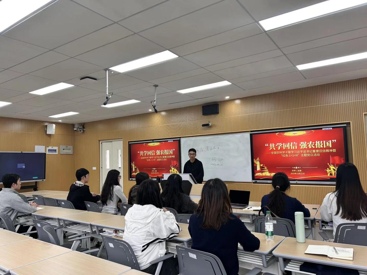 会议结束后,党支部书记王皓老师带领农学二支部的同学们开展研讨交流并对本次活动进行总结,鼓励大家以习近平总书记重要回信精神为指引,将个人理想融入国家三农事业发展,在实践中锤炼本领,真正成为知农爱农、强农兴农的新时代农科学子。