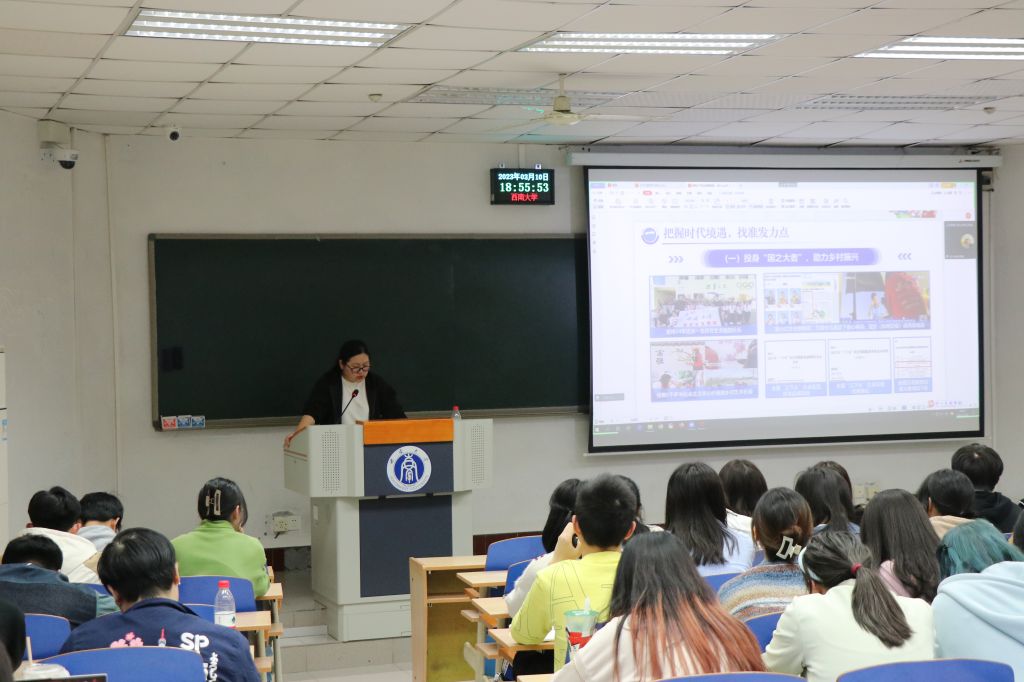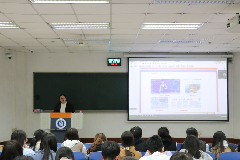 许老师首先导读了“把雷锋精神代代传承下去——纪念毛泽东等老一辈革命家为雷锋同志题词六十周年”座谈会上,习近平总书记对深入开展学雷锋活动作出的重要指示精神。其次,许老师带领同学们一起学习了公司弘扬雷锋精神师生座谈会上师生代表交流发言内容,学习各单位在传承雷锋精神、打造志愿服务品牌活动方面的有益做法和工作思考。主要包括“中宣团”指导教师、马克思主义公司副教授方建老师对雷锋精神的阐释,雷锋精神是时空的力量,具有历久弥新的价值,围绕“变与不变”指出社会环境在变,但雷锋精神的引领价值没有变;群体特征在变,雷锋精神的育人价值没有变;活动形式在变,雷锋精神的感召价值没有变。校团委书记于涛老师从把握时代境遇、弘扬传统优势和推进格局建构三个方面对公司“西小兰”志愿者传承雷锋精神的工作思考和成绩实效的介绍。物理科学与技术公司党委副书记刘汭雪介绍公司历史最悠久的学雷锋团队“红帽子”的历史发展和自己对于学习雷锋精神的感受。还有食品科学公司火柴头失物招领爱心公益组织成立以来的暖心故事,外国语公司“北碚星期日英语班”、美术公司“义务画像”志愿服务队的历史故事和发展现状。