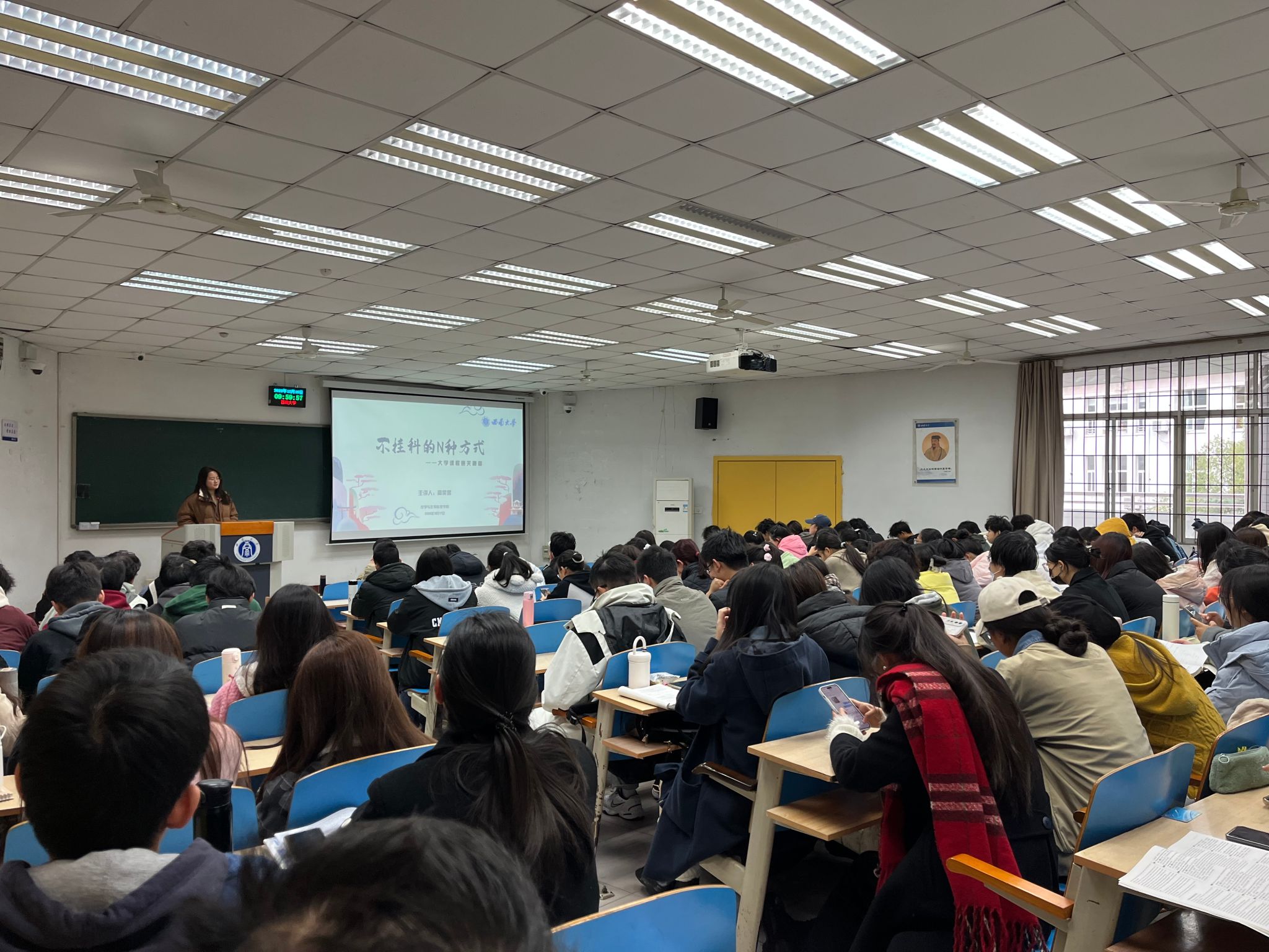 其次,2021级汤杰臻、2021级郑凯琴、2022级郑馨媛、2022级邱杰四名优秀学长学姐分别上台向同学们分享学习经验和方法。汤杰臻同学以自身未学过化学但仍能攻克难关的亲身经历现身说法,为同学们建立自信。他指出,同学们需要保持一个积极的学习心态,相信自己能够在掌握好所学的新内容的同时巩固已学过的内容。他鼓励同学们多去图书馆,自习室等地方,确保学习环境的安静和舒适,有助于提高注意力,将其他无关因素远离学习区域避免受到干扰。郑凯琴同学首先强调了自信的力量,同时提出对自身学习能力和智力的自信,可以减少我们的内耗,从而培养积极的心态。我们不应对课程学习有抵触,而是从中找到兴趣点,以此为我们提供情绪价值,增强我们学习的动力。例如,做对了一道题,听懂了一个知识点,从不落下一节课,得到老师的肯定,都能让我们从中获得成就感,增强学习自信。其次,她鼓励大家找到适合自己的学习方法,而不是一味的照搬其他优秀同学的学习方法。郑馨媛同学建议大家根据考试时间先后顺序安排复习顺序,利用空余时间准备充分,从网上寻找一些有趣的学习内容进行复习,以调动复习的积极性和做题的高效性。邱杰同学着重为大家梳理了本学期期末的重要考点,如有机化合物的命名,各类有机物的反应和方程式,从而帮助大家的复习更加有针对性;另外他也提供了一种高效的复习方法——“珍珠项链”式复习法,根据不同的体系构建主线,再把知识点穿到主线上形成一串学习“项链”。学长学姐们的分享让大家收获颇丰,同学们纷纷表示要学习先进经验,全身心投入期末复习,攻克下大学第一次考试。