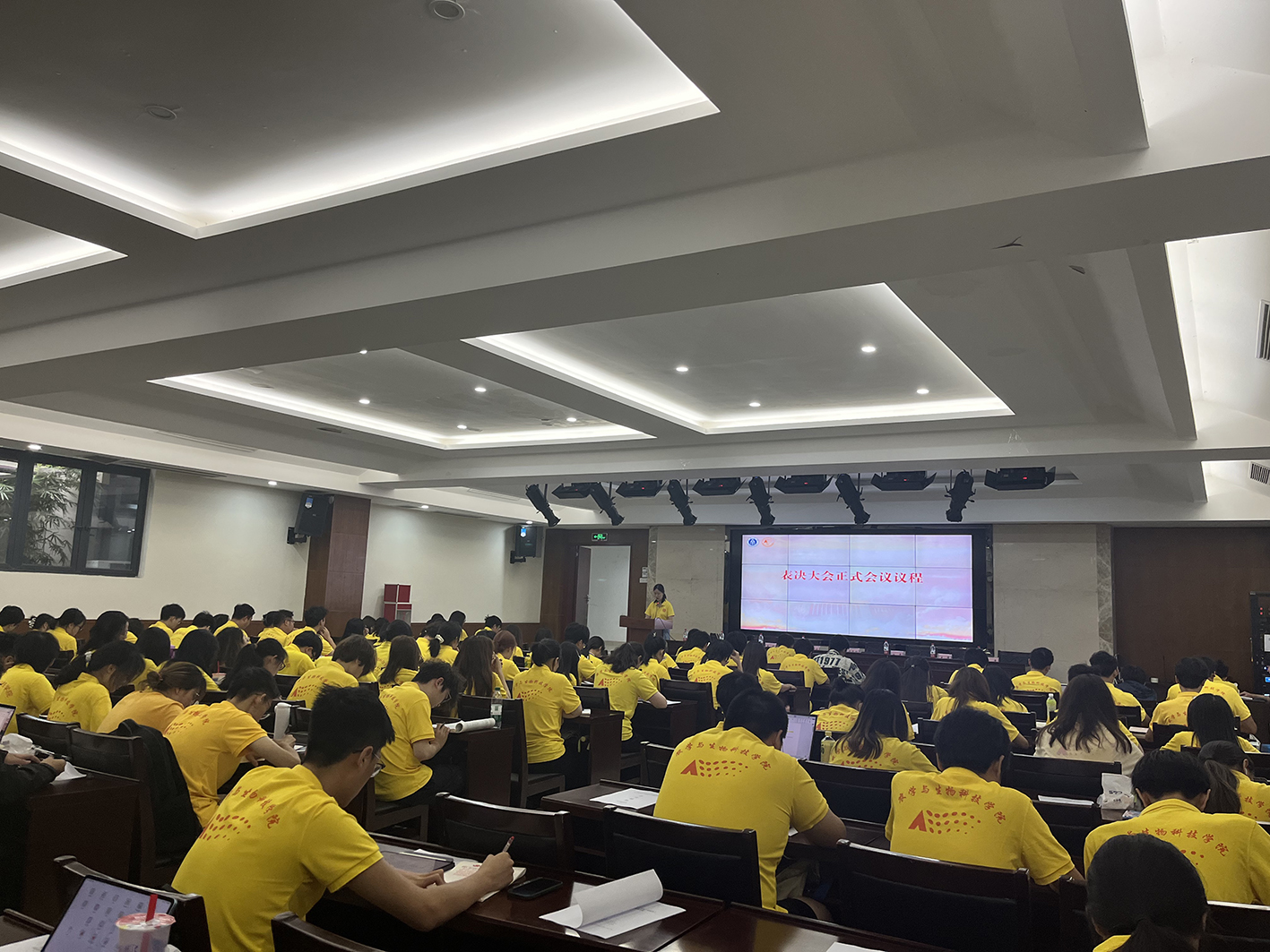 14:30,大会正式会议开始。全体参会人员齐唱《中华人民共和国国歌》。校员工会执行主席张云昊同学宣读校员工委员会的批复。公司党委副书记郑莉佳老师宣读公司党委批复并讲话,她表示,公司党委高度重视公司员工会(研究生会)工作,过去一年,公司员工会(研究生会)落实《关于巩固高校员工会(研究生会)改革成果的若干措施》相关要求,不断提升同学满意度、大局贡献度和社会认可度。她向全体代表提出四点希望:一是增强政治自觉,勇担时代重任;二是弘扬奋斗激情,永葆青春本色;三是投身基层实践,做到知行合一;四是提高技能本领,热忱服务同学。