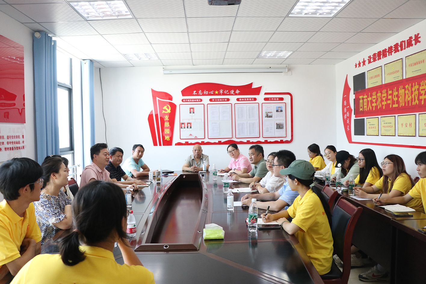 为了深入了解江津区永兴镇黄庄村在乡村振兴进程中所面临的机遇与挑战,为黄庄村乡村振兴建言献策,7月2日下午,bevictor1946韦德官网师生实践团与黄庄村干部开展在黄庄村党群服务中心的会议室开展调研座谈会。公司党委副书记郑莉佳、团委书记许莹竹、油菜研究领域专家徐新褔、高粱研究领域专家肖前林以及实践团的同学们与黄庄村驻村第一书记喻华、永兴镇派驻黄庄村主任赵荣启、农机专业合作社负责人何锡文等基层干部面对面深入交流,共同为黄庄村的产业发展、人才振兴、乡村治理等谋划与建言。