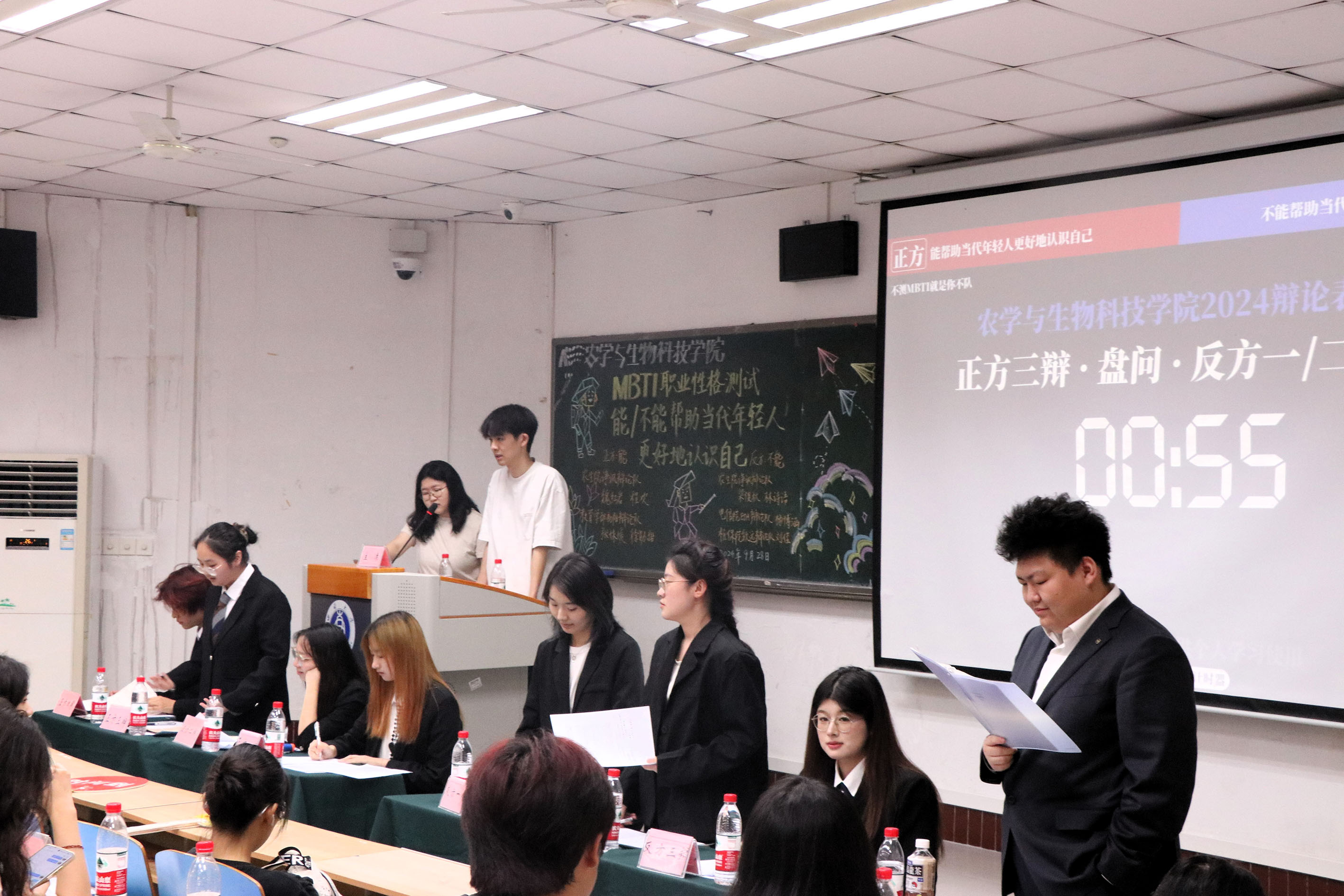 以辩促学,锲而不舍,方能胜人胜己;以辩会友,博采众长,终可成长成才。为了激发同学们对辩论赛的热情,让同学们体验到辩论赛的乐趣,bevictor1946韦德官网诤讽辩论队、教育学部初阳辩论队、电信院EDA辩论队、植保院致远辩论队于2024年9月28日(星期六)下午14:20在32教313教室联合举办了一场以”MBTI职业性格测试能不能帮助当代年轻人更好地认识自己”为辩题的2024级新生辩论表演赛。