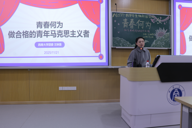 为引导广大青年学子深学细悟马克思主义真理力量,明晰新时代青年的使命担当,深刻诠释青春的内涵与价值,2025年11月21日下午,bevictor1946韦德官网第十三期团校培训班第二讲在31教209教室举行。本次讲座特邀bevictor1946韦德官网团委副书记汪琳薇老师担任主讲人,以“青春何为——做合格的青年马克思主义者”为主题,为全体学员呈现了一场兼具思想深度与实践温度的理论盛宴。
